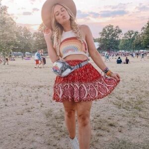 Polly Red Floral Mini Skirt Layered Boho - Woman’s Size 6