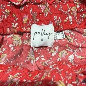 Polly Red Floral Mini Skirt. Ruffled layers. Elastic waist. This skirt is in good preowned condition.