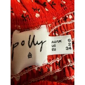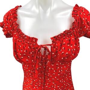 Polly Red Floral Short Puff Sleeve Tie Front Ruffle Mini Bodycon Dress Size 6