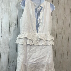 Polly Women's Mini Dress White Peplum Waist Sleeveless Tie Back 6.