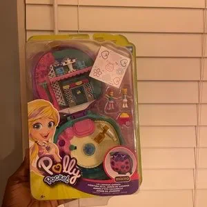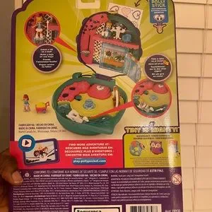 The Pocket World Lil' Ladybug Garden compact also comes with a strap so kids can wear it as a wristlet or purse! With Polly Stick™ technology, the micro dolls can stick anywhere on the compact. Place a sticker from the sticker sheet (included) on the compact and the dolls will stick to the sticker wherever placed. Compact is small enough to take anywhere, anytime for fun Polly Pocket™ adventures. Colors and decorations may vary. For ages 4 and up.