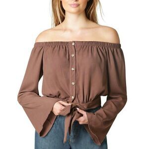 Polly & Esther Blouse Top Medium Brown Juniors'