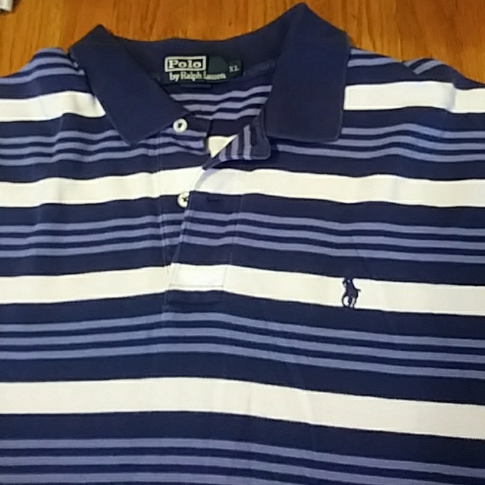 Ralph Lauren polo navy blue light blue and white stripped size L