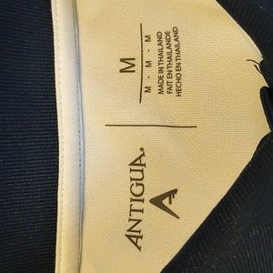 Antigua polo, mens medium, navy blue w/white. Has some small minor snags in the back near the bottom. Can't see them unless you get close. see pics.