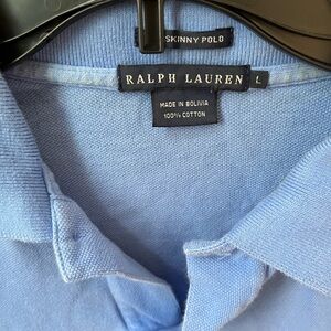Ralph Lauren Polo. It’s a child size Large, but can be a women’s XS/ S. Blue Polo with yellow Polo Logo. Old but classic. Good condition.