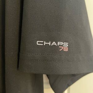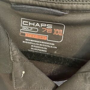 Size XXL Chaps golf stay dry black polo. Material is 96% polyester and 4% Lycra. Estimated Measurements: PTP Length Always willing to bundle and take reasonable offers!
