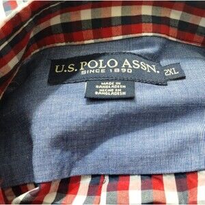US Polo Assn Shirt Men's 2XL Button Down Collar Long Sleeve Red Black White Gingham
