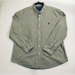 Polo Assn Shirt Men's 2XL Long Sleeve Button Down Collar Green White Gingham
