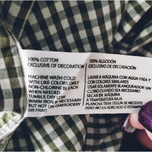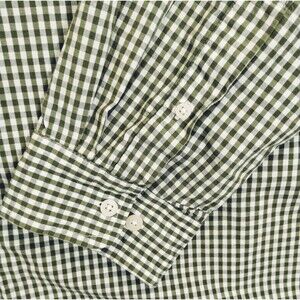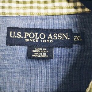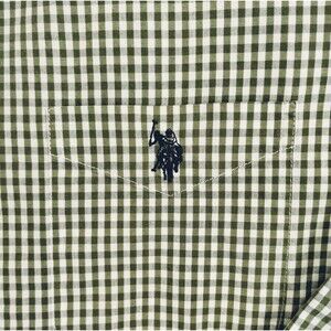 Polo Assn Shirt Men's 2XL Long Sleeve Button Down Collar Green White Gingham check. Button up front.. 100% Cotton. Made in Bangladesh. Navy black pony on pocket. Moss army green and white checks ) 8 checks per inch)