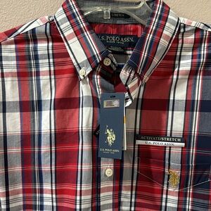 Polo Association Active Stretch Size Small Red Grey and Blue Plaid BNWT