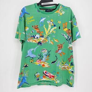 Polo Ralph Lauren Green Ocean Underwater Polo Bear Classic Fit Short Sleeve Crew Jersey T-Shirt size Medium Retail $145