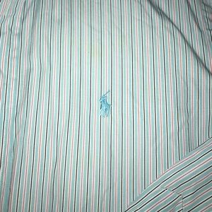 Polo Button Down, classic fit. Size 17 32/33. Sky blue, fuchsia pink, navy and white. Light wear.
