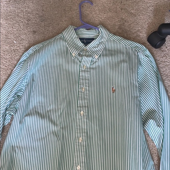 Green and white polo button down