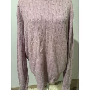 Polo by Ralph Lauren 100% cashmere lavender cable knit sweater XL men’s but can be women’s has 2 spots where it’s has a whole but stunning up front no stains