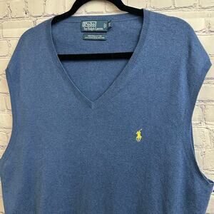 Polo By Ralph Lauren Blue Sweater Vest XL Tall Embroidered Logo Golf Formal