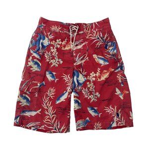 Polo By Ralph Lauren Boys Swim Board Shorts Large Red Fish Novelty Print Vintage Style