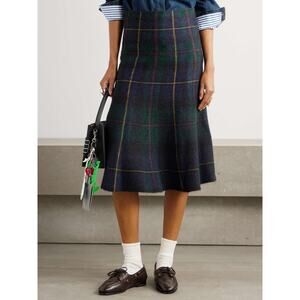 Polo By Ralph Lauren Checked Alpaca Wool Midi Skirt XS