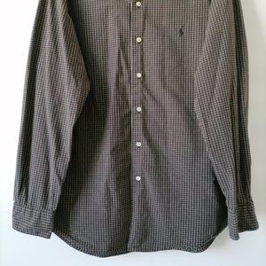 Polo By Ralph Lauren Mens Taupe Gray Check Classic Fit Button-Up Shirt Size L