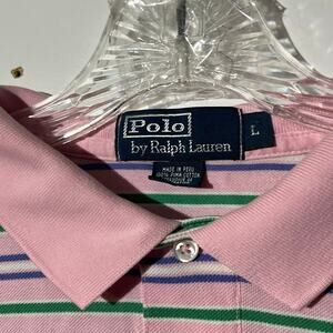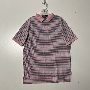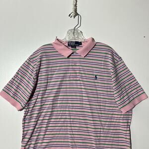 Polo By Ralph Lauren Pink Blue Striped 100% Cotton Short Sleeve Shirt Mens Large