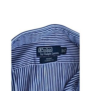 This timeless Polo by Ralph Lauren Regent Classic Fit shirt boasts a sophisticated blue and white striped design. Crafted from high-quality cotton, it offers comfort and durability, making it a versatile wardrobe essential. The button-down front and long sleeves enhance its classic appeal, suitable for both casual and formal wear.