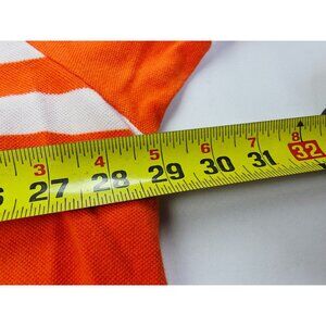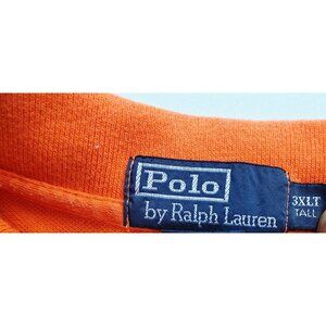 This Polo by Ralph Lauren Size 3XLT Men's Orange Blue White Stripe Short Sleeve Polo is a classic and colorful addition to any wardrobe. Made from 100% cotton knit fabric, this polo features a collared neckline with a spread collar style, button closure, and short sleeves. The blue striped pattern adds a pop of personality to the piece, making it suitable for various occasions from casual to formal. The logo accents on the polo give it a touch of preppy style, perfect for activities like rugby, walking, and golf. Machine washable and suitable for all seasons, this Polo Ralph Lauren shirt offers a comfortable regular fit for big and tall men.
