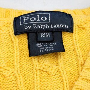 Polo By Ralph Lauren Yellow Cable Knit V-Neck Sweater Vest 18M Baby Cotton