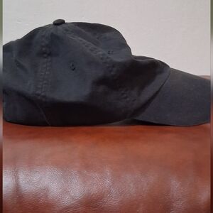 Stylish black cap featuring a red embroidered logo on the front.