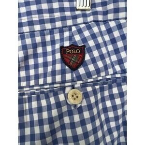 Polo GOLF Ralph Lauren Shorts SZ 35 Blue Check Flat Front Chino Classic Preppy
