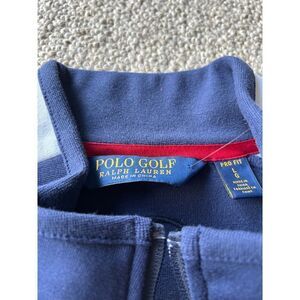 Exclusive Polo Golf Ralph Lauren jacket from the 2019 US Open collection. Features a stylish navy and gray colorblock design with red zip accents. Performance fabric perfect for golf or casual wear. Three functional zip pockets and full-front zipper closure. Ideal for golf outings, sports events, or casual weekend activities. Limited edition commemorative piece for golf enthusiasts and collectors.