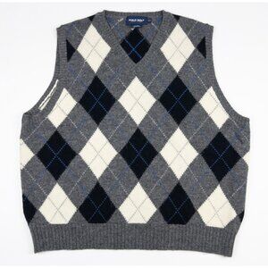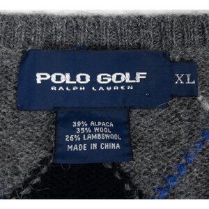 Polo Golf Ralph Lauren Alpaca Sweater Vest Men's XL Argyle Wool Knit V-Neck Gray