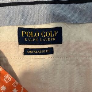 Elevate your golf game with these stylish Polo Golf Ralph Lauren Classic Fit Flat Front Shorts in a vibrant orange giraffe print, size 40. Perfect for any golfers wardrobe, these chino shorts feature a zip closure and flat front design for a clean, sleek look. Made from a comfortable cotton blend material, they are perfect for a day out on the course or a casual weekend outing. Don't miss out on this trendy addition to your shorts collection
