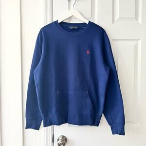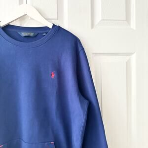 Size medium from Polo Golf Ralph Lauren. Cobalt blue with red stitched pony and red trim kangaroo pocket. Crew neckline. Preowned in good condition with no stains or tears.