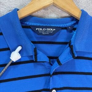 Polo Golf Ralph Lauren Men's Blue Black Stripe Polo Shirt Size L Cotton Silk