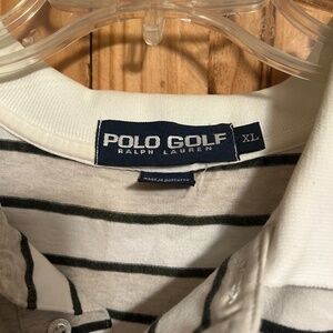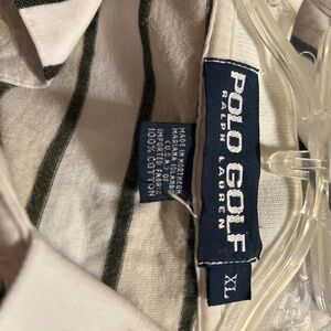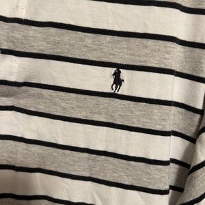 Great condition. Size XL. White, gray and naby blue stripes. Has blue polo horse. Measurements are pit to pit 26 and length is 29 1/2 in front and back is a little longer at 32