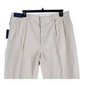 Polo Golf Ralph Lauren Pleated Pant Men 40 L Khaki Cream Silk Linen Wide Leg NWT