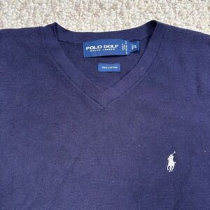 Keywords: Polo Golf, Ralph Lauren, Sweater Vest, Sleeveless Sweater, Golf Vest, Mens Vest, Blue Vest, Cotton Vest, Preppy Style, Casual Vest, Golfing Apparel, V-Neck Vest, Layering Vest