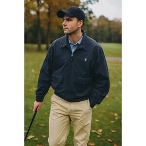 Polo Golf Ralph Lauren VTG Men's SZ XL Cotton Blend Windbreaker Golf Jacket Navy