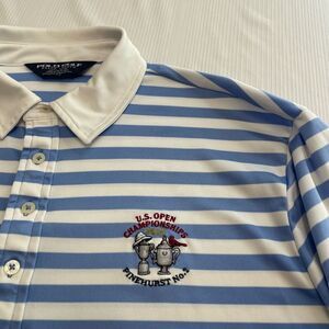 Polo Golf Ralph Lauren Blue White Stripe Short Sleeve Polo Shirt US Open Large
