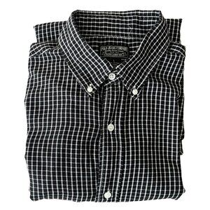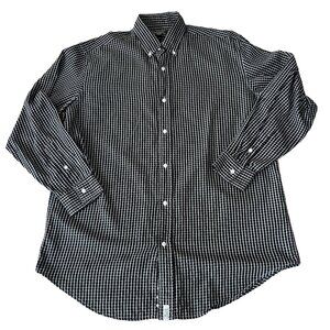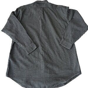 Polo Jean Co Ralph Lauren shirt. The black check pattern, long sleeves, and collared neckline make it a versatile addition to any outfit. The button-down closure and classic fit ensure a comfortable and stylish look for any occasion. Made of machine-washable cotton, this shirt is easy to care for and perfect for everyday wear. Whether you're dressing up or dressing down, this shirt is a must-have in any man's wardrobe. Add it to your collection today!