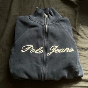 Polo Jeans Co. Full Zip Y2K Embroidered Script Navy Jacket Size Small