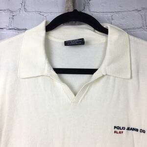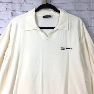Polo Jeans Co Vintage Collared V-Neck Long Sleeve Retro 90's Pullover Cotton Cream Sweater Size XXL