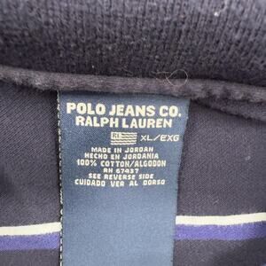 Polo Jeans Co Ralph Lauren Polo Shirt Mens XL Navy Blue Striped Short Sleeve