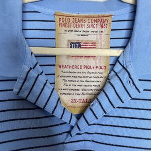 Polo Jeans Co Ralph Lauren Shirt Mens 3X Tall Blue Striped Pique Flag Logo