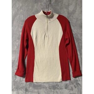 Polo Jeans Co Ralph Lauren Sweater Womens Medium Red White Mock Neck 1/4 Zip