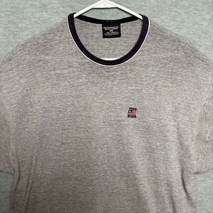 Polo Jeans Co. T-Shirt Ringer Crew Neck USA Flag Logo Gray Tee Men L
