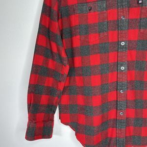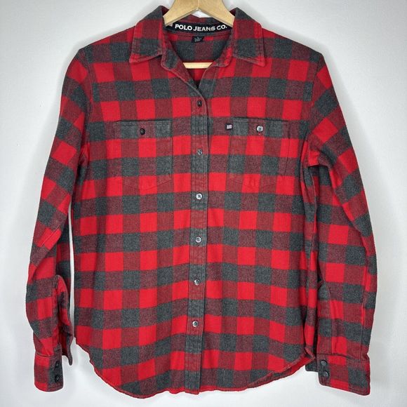 Polo Jeans Co. Womens Top L Red/gray Plaid Flannel Long Sleeve Button Up