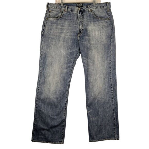Polo Jeans Company Ralph Lauren Men 40x32 Blue Whiskered Faded Medium Wash Denim