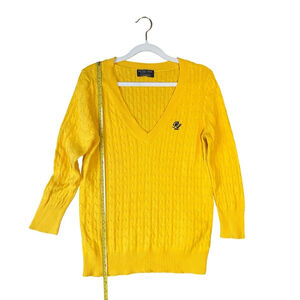 Ralph Lauren Polo Jeans Company Yellow Cable Knit V-Neck Sweater
