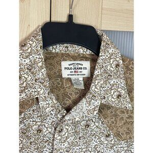Polo Jeans Ralph Lauren Western Pearl Snap Shirt Sz M Floral Brown Vintage 90s