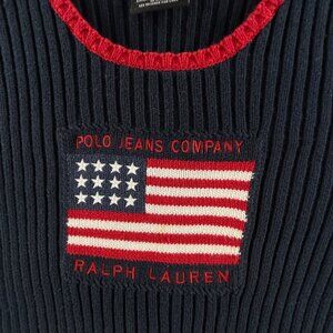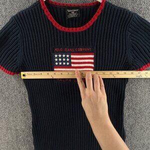 Polo Jeans Ralph Lauren Women Flag Sweater Rib Knit Large Short Sleeve Blue Red